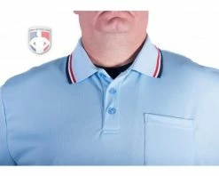 Smitty Umpire Smitty Short Sleeve Body Flex Umpire Shirt – Powder Blue With Red-White-Navy Trim