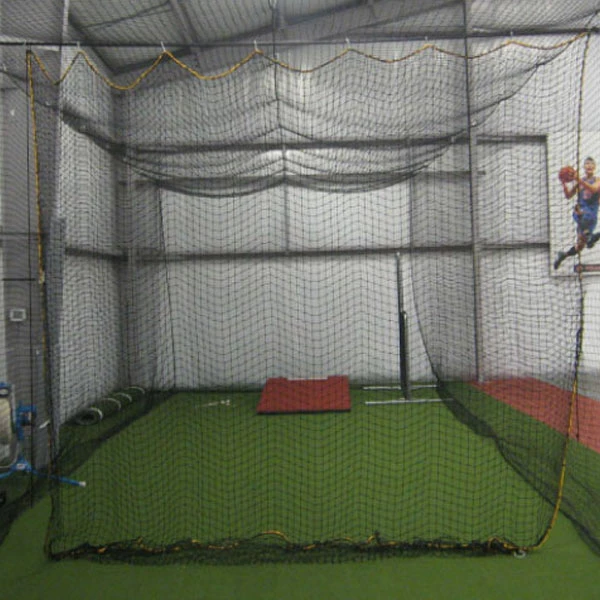 Create (2) batting cages by installing a divider net in the middle of your cage. Also can be placed behind batter to protect batting cage net. Constructed of latex-treated nylon and has sewn-in rope border around the perimeter and rings in four corners for easy hanging