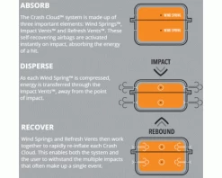 Protection: Windpact’s Crash Cloud™ technology uses an air bladder system to amplify impact protection without sacrificing performance, comfort & style. Extensive testing shows that Windpact padding disperses energy more effectively than traditional padding. The technology has a series of crash clouds, refresh vents, and wind springs that instantly absorb and disperse impacts.
